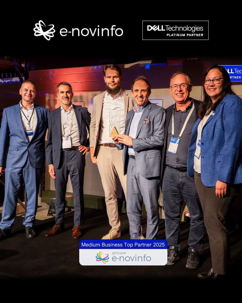 Le Groupe e-novinfo a eu l’honneur de recevoir le prix “Medium Business Top Partner 2025”, décerné par Dell Technologies Suisse. Cette distinction met en lumière une collaboration fondée sur la confiance, l’innovation et la recherche constante de performance au service des entreprises suisses.
